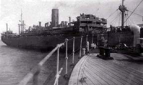 View of Empress of Hong Kong whilst transfering survivers of the Nailsea Manor ( from H.M.S Violet )